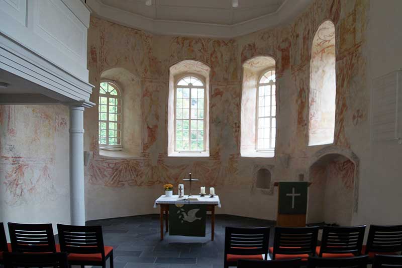 Werra-Meißner-Kreis. Das besondere ist das romanische Langhaus mit seinen hochgelegenen Rundbogenfenstern, weswegen eine Wehrfunktion der Kirche vermutet wird, und die spätmittelalterlichen Wandmalereien im Inneren. Der Bau erhielt in mehreren Etappen das heutige Erscheinungsbild. Das erwähnte romanische Kirchenschiff stammt vermutlich aus dem 12. Jahrhundert, der an der westlichen Seite angebaute Querturm wurde etwas später errichtet. Der polygonal geschlossene Chor wurde vermutlich erst in der zweiten Hälfte des 15. Jahrhunderts angefügt. Bei der Renovierung der Kirche in den 1960er Jahren wurden die übermalten Wandmalereien aus dem Spätmittelalter entdeckt und wieder freigelegt.